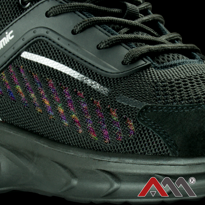 Material Fly-knit negru cu accente colorate și detalii argintii – design sportiv și modern