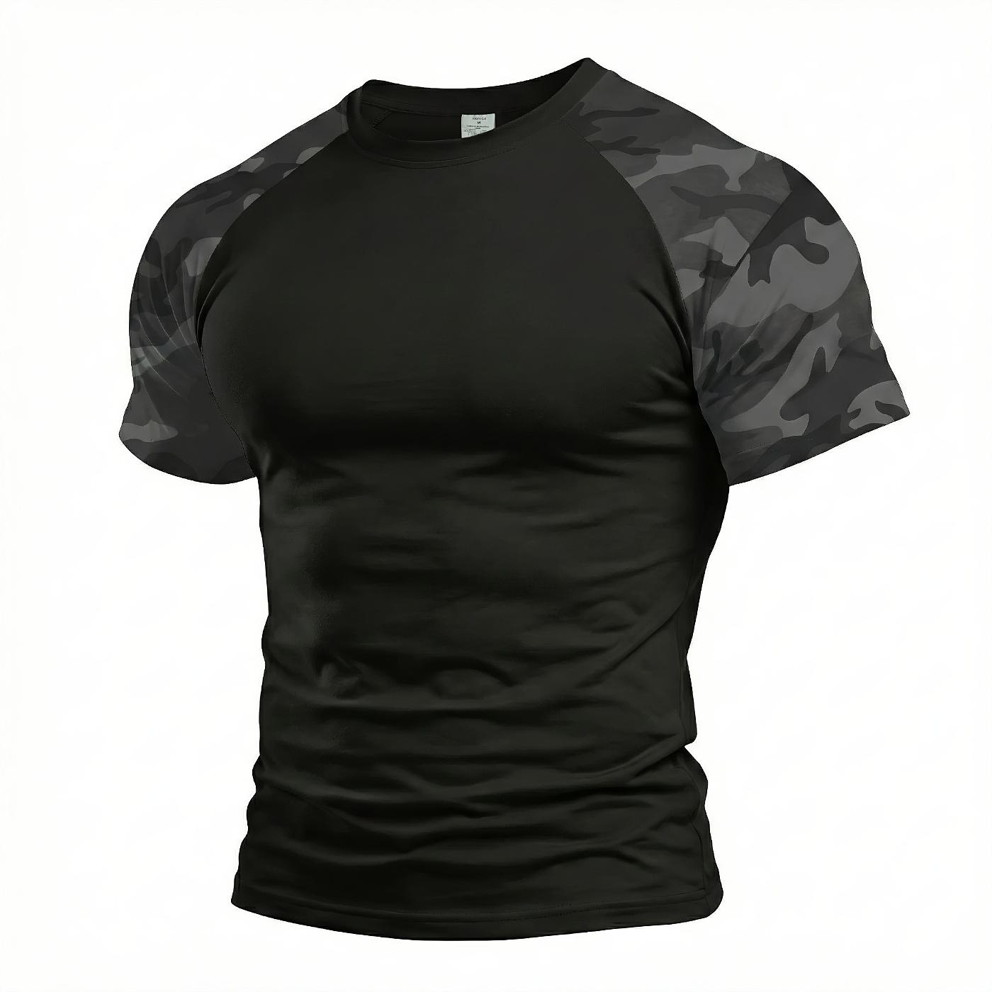 Tricou de lucru confortabil, realizat din 100% bumbac de înaltă calitate, material respirabil și plăcut la purtare. Model cu guler rotund, culoare neagră și mâneci în design camuflaj, potrivit atât pentru muncă, cât și pentru utilizare zilnică.