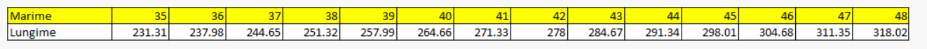 ▪ Latime calapod: 11 mondopoint. ▪ Inaltime carambi: min. 75 mm (sortiment A).