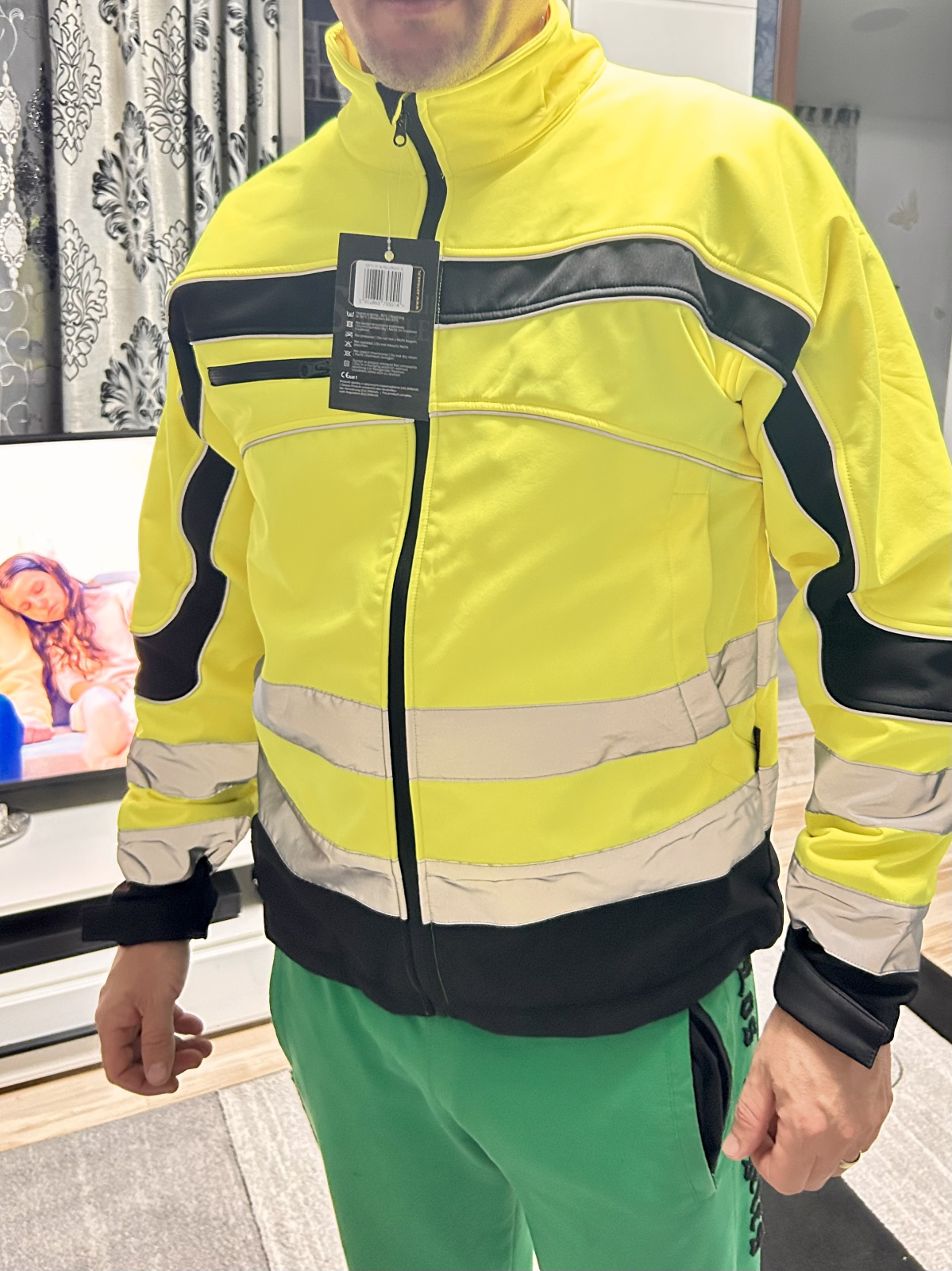 Protecție și Vizibilitate: Fabricată din material softshell, acoperit cu un strat de material TPU, jacheta îți oferă o protecție excelentă împotriva vântului și a condițiilor meteorologice dificile. Dungile reflectorizante împrăștiate pe față și pe spatele jachetei asigură o vizibilitate sporită în timpul lucrului, crescând siguranța și reducând riscul de accidente.